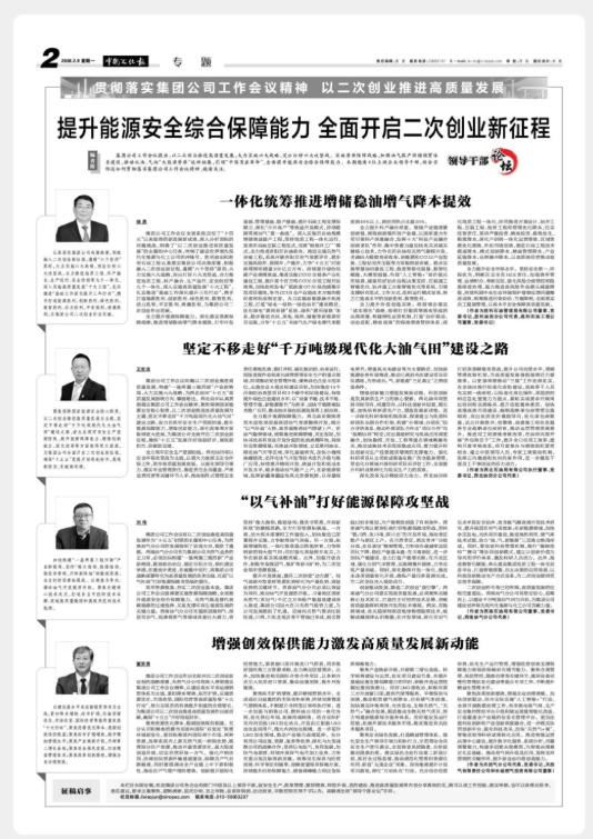 2月9日,《中国石化报》2版刊发局有限公司董事、党委书记,分公司代表刘伟署名文章:《“以气补油”打好能源保障攻坚战》,结合公司实际谈如何贯彻落实集团公司工作会议精神,提升能源安全综合保障能力,全面开启二次创业新征程。
